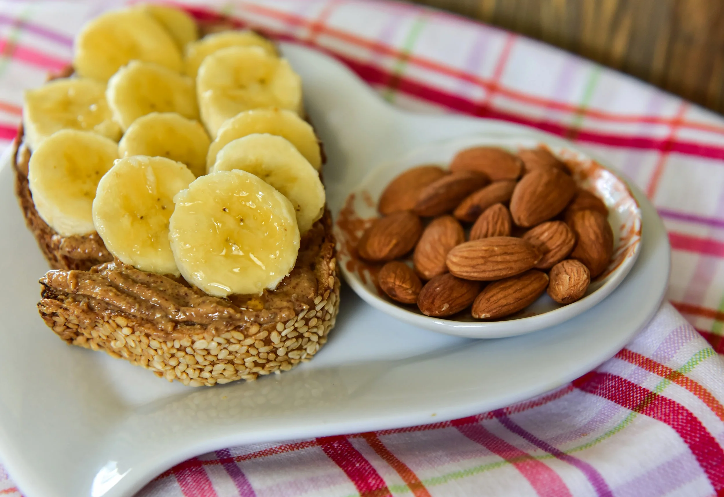 Sliced banana with almond butter on Whole Wheat Sesame Seed Barrio Bread™